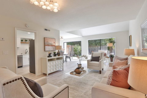 Live the Downtown Morgan Hill lifestyle at Creekside Village! This completely renovated and specially designed 3 bed, 2.5 bath townhome offers 1,590sf of luxury living. The modern feel of the kitchen is brought by the Calcutta Bianco countertops, white shaker cabinets, all new stainless steel appliances and white washed laminate floors that flow throughout the open living space. The high ceilings allow for lots of natural light to shine through the 2 story home. The marble theme of the large porcelain tiles carries through the bathrooms with a different accent making each one uniquely fabulous. In addition to the large primary suite and 2 guest rooms, an office setup would be perfect for the semi-private loft area. The environmentally friendly, low maintenance backyard plus two-car garage complete the home. The gated community offers privacy and security amongst the other amenities including pool, spa, sauna, tennis courts, clubhouse and more.