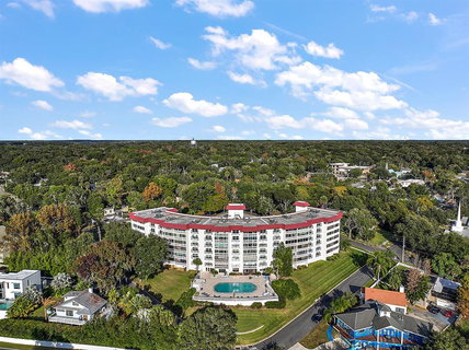 ONE OF A KIND TOP FLOOR DOUBLE UNIT VILLA DORA CONDO WITH COVETED LAKE DORA VIEWS – Prime location 2 blocks from downtown Mt. Dora with unique shops, art galleries, cafes, fine dining, full-service marina, and Donnelly Park best known for its famed Christmas lights display and renowned Arts & Craft festivals. Enjoy the serenity and lake breezes found at beautiful, desirable, well-maintained Villa Dora 55+ Condo Community. The building exterior was recently repainted, newer roof and pool deck were renovated in 2019. 3 BR, 2.5 BA, 2,679 SF double unit offers easy elevator access, sweeping Lake Dora views, in-unit laundry room, abundant storage, and open floor plan with an expansive wall of windows, sun porch capturing pristine lake views. It’s also the perfect spot for viewing the 4th of July fireworks! There are hardwood and tile floors, crown molding, wood window casings, and wide baseboards. There is a huge great room, elegant formal dining, office/media room, well-appointed kitchen with Shaker-style cabinetry, granite counters, charming farmhouse sink, wall oven and microwave, and stainless refrigerator—private master suite with walk-in closet and bath with granite counters, 2 sinks, and tiled shower. Guest ½ bath and cedar walk-in closet. 2 guest BRs share a full hall bath. Multiple closets, lake views from most rooms! 2 assigned covered parking spaces plus ample guest parking. Community laundry room, library, clubhouse, storage room, and heated pool with sun deck. Friendly, well-run HOA and on-site maintenance engineer. A Must-See!