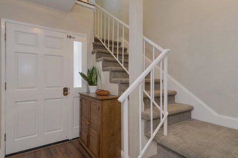 Well appointed & remodeled townhome with a flexible floorplan. Formal entry w/ wood laminate floors, generous size 2nd & 3rd bedroom on 1st floor w/ private patio & direct access to common area greenbelt. 1st floor bath w/ tile floors & shower over tub w/ subway tiles, glass enclosure & marble vanity. Sunlit great room style living space with wood laminate floors & open kitchen that features ample quartz counters, breakfast bar & Shaker style cabinets. Separate dining area w/ ceiling fan. Inviting living room & seating area w/ fireplace & glass doors to a sunny & private upper balcony that overlooks the common area. Gorgeous master suite w/ wood laminate floors, walk-in closet, glass doors to a 2nd upper balcony & tastefully remodeled master bath w/ tiled glassed enclosed shower stall and separate vanity. Oversized attached 2 car garage with extra storage & automatic door opener. This home has been beautifully maintained and shows true pride of ownership.