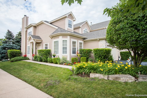 High-End Luxury Townhome End Unit! 4 Bedrooms + a Loft! Very spacious !Neuqua High School! The first floor Master features a walk-in closet, Master bathroom with a large walk-in/ Roll-in Shower with tile and a double vanity recently regrouted. Bright and open Kitchen features vaulted ceilings, skylight, eat-in table area with bay windows, Breakfast bar, silestone counter tops, backsplash, and wood flooring. Newer carpet throughout. Finished basement/rec room + room for storage in the crawl space. 1st floor laundry room with washer and dryer. White trim and white 6-panel doors throughout. Recenltly refinished oversized paver patio has privacy landscaping and overlooks large green space and pond. Sprinkler system. 2 car garage. Hot water heater 2 years old,Newer dishwasher. Everything has been done. Naperville 204 schools with Neuqua HS. This unit has it all!