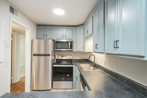 Desirable End Unit – Updated & Move-In Ready! Recently renovated one-level home with a spacious, open-concept layout—featuring stunning hardwoods, remodeled kitchen w/ stainless steel appliances, and combined living/dining space perfect for relaxing or entertaining. Primary suite offers a generous walk-in closet, and washer/dryer remain!