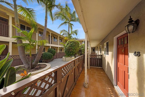 Move-in ready 1st floor condo located inside of a well maintained and gated community. VA and FHA approved complex! Condo includes 1 assigned parking spot inside of the gates, a spacious and open living area, a modern kitchen, ample natural lighting, a spacious front patio and a balcony off of the primary bedroom. Entire interior has been freshly painted. Charming and friendly community with beautiful landscaping, a sparkling swimming pool and low HOA. Enjoy easy access to nearby restaurants, grocery stores, shops, etc. as well as easy access to downtown San Diego, Balboa Park, beaches, parks, outdoor recreation and the 5, 805 & 94 freeways. This is a must see!