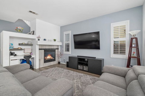 Stunning home in gated Bonita Creek community, this 2 story home offers 3 ample size bedrooms, 2.5 bath and an upstairs loft that can be used as an entertainment area or additional bedroom. This wonderful home offers an spacious living area with plenty of natural light, fireplace in the living room, Open kitchen and dining room that leads to a spacious patio overlooking the greenbelt with no neighbor behind. A roomy primary bedroom with an generous walk-in close. Two-car garage attached with roof racks for extra storage, plus additional storage space throughout the house. Property in a community that offers a beautiful pool, jacuzzi and kid play area. Walking distance to the mall, easy freeway access and much more.