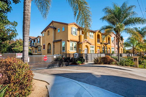 Do not miss this 3-story turnkey townhome in desirable Estrella Walk! Beautifully presented with high ceilings, fresh paint, plank tile flooring throughout, elegant baseboards, plantation shutters, recessed LED lighting, remodeled bathrooms, and large front fenced patio. Updated open kitchen complete with stainless appliances, gas range, ample cabinetry, eat-at bar, and plenty of adjacent space for dining. Primary bedroom boasts organized walk-in closet, balcony, and ensuite bathroom with dual vanity and frameless shower with custom tile surround. PLUS high-end front load washer/dryer, ceiling fans, and attached 2-car garage with additional built-in storage. VA APPROVED #008547 - This one will go fast! Rarely available, the homes of Estrella Walk are perfect for families and investors alike! Located in the heart of National City, residents enjoy proximity to shopping, parks, and access to all of San Diego’s major freeways. Low HOA fees! VA APPROVED #008547 Equipment: Dryer,Garage Door Opener, Range/Oven, Washer Sewer: Sewer Connected Topography: LL