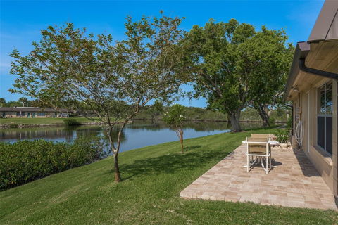 If you are looking for a beautiful, quiet, gated 55+ neighborhood to call home, look no further! This lovely 2-bedroom. 2 bath waterfront villa is a nature lovers dream and is in the friendly, and quaint community of Gardens of Beacon Square. This home is squeaky clean with an open floor plan and is move in ready. The kitchen is light and bright and has a pass-through to the dining area. Large living room/dining room combo, and spacious Florida room with picturesque views of the lake and the beautiful trees. Large master bedroom with walk-in closet and slider leading out to the Florida room. Master bath with step-in shower. The guest bedroom is gracious in size and serviced by the guest bath. Inside laundry with a full-size washer, dryer, and shelving. Convenient built-in ironing board right next to laundry. Attic access for storage. Covered parking out front. Newer HVAC system. Newly installed pavered patio in the rear of the unit where you can enjoy your morning coffee, afternoon tea or grill your dinner. Just imagine yourself living here listening to the sounds of the water and the birds singing. The Gardens of Beacon Square is a hidden treasure! You will truly enjoy this active community whether you are looking for a permanent home or a winter getaway. The community features an active clubhouse, library, 3-lakes with great fishing, shuffleboard, and community pool! Association fees include cable, internet, water, trash, ground maintenance, pest control, building flood insurance, escrow reserves and more. Located close to beaches, parks, dining, and shopping. Easy commutes to all the Tampa Bay area. Make sure to schedule your tour of this beautiful condominium today!