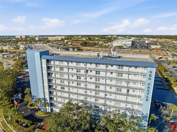 The secure entry system adds a layer of safety with fob access and security cameras throughout the building. The building is part of the Sea Castle community, which allows access to the Gulf Harbors Beach Club for a yearly fee. The location provides easy access to restaurants, grocery stores, and vibrant downtown New Port Richey.