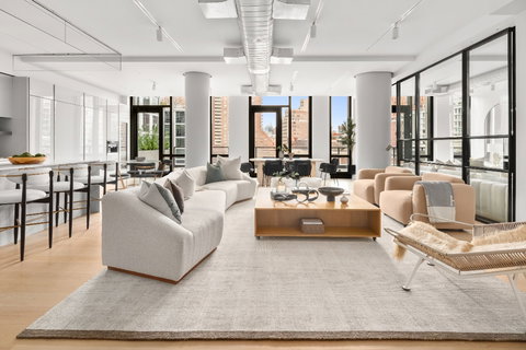 Newly renovated never lived in home in the heart of Tribeca. An incomparable blend of flawless form and thoughtful function, this impeccably designed, light-filled three bedroom (possible four bedroom), four and a half bathroom duplex sprawls over 3,300sqft. The perfect separation of living space and private quarters, with floor-to-ceiling windows and a private 550sqft terrace, is a unique combination of quintessential loft living in a luxury condominium.