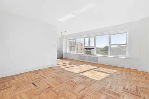 Gaze out over the treetops of Fort Greene Park in this top-floor corner co-op at Kingsview Homes.
