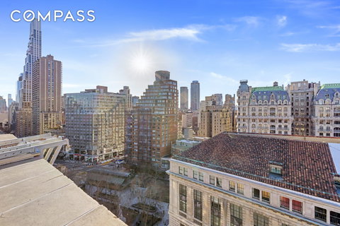 The living room has a romantic set of double French doors that leads to the glorious 500 square foot terrace with story-book vistas west, north and south. This outdoor oasis offers a private sanctuary amidst the bustling city, and easily provide for al fresco dining, lounging in the sun, or simply enjoying breathtaking views of the surrounding skyline.
