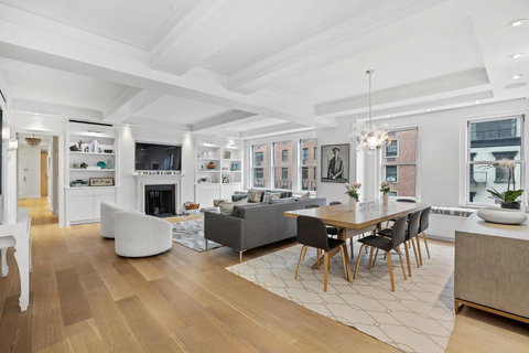 Newly renovated prewar 8 room residence offering three-four bedrooms, three and a half bathrooms, and 2 wood burning fireplaces in a full-service cooperative pre-war building built in 1926. Located in the heart of Greenwich Village, The Beauclaire offers unparalleled luxury living, service, and charm. A foyer perfectly designed with a wall of closets and storage leads you into the sprawling living room with a wood burning fireplace and wall of windows facing East. Adjacent is the open dining room, perfectly situated for grand entertaining. Custom millwork has been smartly built to create a sleek bookshelf and bar including a 24 bottle Subzero wine refrigerator and inconspicuous storage. The separate windowed eat-in chef's kitchen offers a custom designed cabinetry, extensive countertop space and top-of-the-line appliances including a Wolf 6-burner gas range with vented hood, double Wolf Built-In Ovens, Subzero side by side refrigerator and freezer with additional Subzero refrigerator drawers, hidden microwave oven, a Bosch dishwasher and an abundance of storage throughout. The luxurious Primary suite features a stunning wood burning fireplace, an oversized walk-in custom California Closet and smartly designed window seating with hidden storage. The lavish windowed spa-like en-suite bathroom was elegantly remodeled with Thassos marble completed with a stall shower, double vanity with Kohler sinks, soaking tub and Toto toilet. The spacious secondary bedrooms feature oversized custom California Closets and custom en-suite bathrooms, Both with tub and glass shower enclosures. Additional features of this residence include ceilings over 9 feet, 8" white oak flooring, a laundry room with sink, Whirlpool washer and vented gas dryer, steam heat & central air conditioning with 3 zones, and brand new windows throughout. The home is a smart home with a fully automated Lutron lighting system, integrated speakers throughout, and Lutron automated window shades, all run to a dedicated AV closet. There is a separate back entrance as well, with access to the 26 East 10th Street side of the building. The Beauclaire offers 24-hour doorman, live-in super, around the clock porter, laundry facilities, fitness room, children's playroom, storage, and a shared garden and common roof terrace. The coop is financially stable, with low maintenance as result of the income from the retail space below. Current assessment $932 per month.