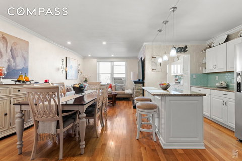 This beautifully renovated two-bedroom, 1.5-bath co-op is located in Jackson Heights. The apartment is filled with natural sunlight from northeastern-facing windows and features soundproof walnut hardwood floors. Upon arrival, you’ll notice several stylish renovation touches, including crown moldings, custom radiator covers, and recessed lighting.