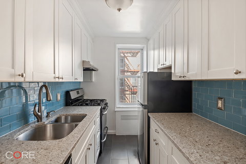 Welcome to this bright and renovated two-bed, one-bath home offering ample space and high-end finishes. Its oversized living room connects to the dining area, which is just off of its fully-loaded windowed kitchen. Kitchen highlights include floor-to-ceiling cabinets for maximum storage and a full line of stainless steel appliances, including a dishwasher.