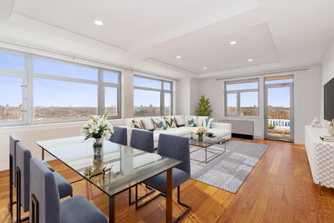 NOTE: ALL Open Houses are BY APPOINTMENT ONLY in advance. Please contact us to schedule your tour. Do not just show up in the building. *Priced to SELL at BEST VALUE! **RARELY AVAILABLE CORNER Three-bedroom home with balconies in the most desired Tower 3 at the Luxury Sky View Parc!421 Tax abatement in place till 2026.The BEST CORNER 3BR/3Baths home with two large balconies, South & West exposures, and Open Views in Tower 3 (best of all) in Sky View Parc, the most luxurious and sought-after Condominium in Flushing.Welcome to this beautiful corner 3BR/3Baths home! Bright and Cheerful! Excellent condition. The desired sunny South and West exposures and amazing extended open views. The spacious corner living room with a balcony. Two large en-suites, and 3rd large bedroom. Open kitchen with tons of cabinets. Washer dryer in the unit. PTAC unit in each room as well as the recessed lighting. This is a beautiful home with beautiful sunlight throughout the day on every corner!PS. It has been the sellers pied-a-terre throughout the ownership, hence it is in excellent condition!Sky View Parc, the most luxurious condominium in the heart of Flushing. just steps from the #7 subway & Long Island Railroad offering a 22-minute commute to midtown Manhattan. Besides its On-Site Related property management and 24-hour concierge, residents here enjoy the unique amenities including valet parking, Fengshui designed 4-acre rooftop garden equipped with a health club with a spa and sauna, outdoor swimming pool, outdoor tennis, and basketball courts, running track, children playground, Golf putting greens, Dog Run, and etc.Tower 3 is considered the BEST tower in Sky View Parc given its location and size. Highly desired.Dont miss this one large corner home with your very private outdoor terrace!