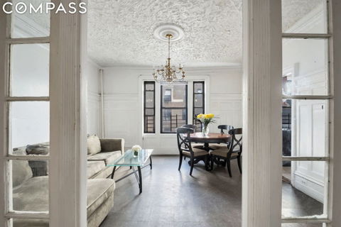 CONTRACT OUT -- NO SHOWINGS ** Uptown corner HDFC pre-war co-op residence in Washington Heights, configured as 4-Bedroom, 1.5 Bath. Easily reverts to its original layout as 3-Bed, separate dining, living room and 2 full baths. This space needs your TLC and imagination to make it your own. Original wainscoting, moldings, hardwood floors, and pre-war details. Lots of storage space, and of course 9'+ ceilings that everyone loves. Bright light all day long ...