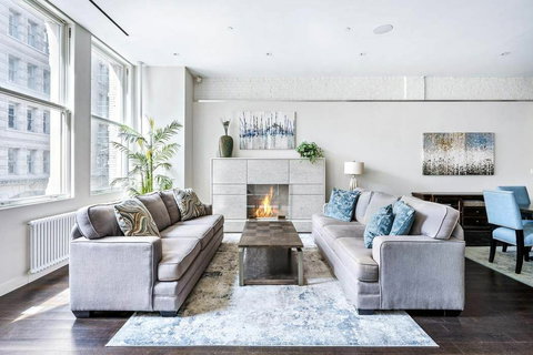 A wide sunlit gallery leads to the private wing of the loft, featuring four pin-drop quiet bedrooms* and three full baths. The primary suite offers serene northern exposures, an oversized walk-in closet, and a five-fixture marble bath that features a double-wide shower and separate soaking tub. The loft's three secondary bedrooms*, all of which are interior, are all well-proportioned and feature an abundance of closet space. One of the bedrooms* has an en-suite bathroom while the other two share the home's third full bath. This unique offering is completed by two-zone central air-conditioning and a Control-4 full-home automation system – controlling sound, lights, television, climate, and security.