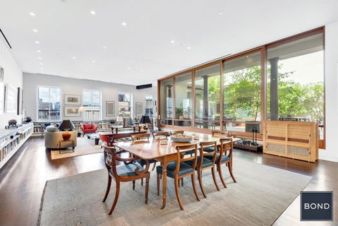 Enjoy an unparalleled indoor/outdoor living experience in this grand duplex apartment. Situated in an historic cast iron building, the penthouse at 94 Mercer captivates with an interior two-story atrium that floods the home with natural light. Beautiful wood-framed glass doors slide open to access the interior courtyard from all directions, making for an incredible entertaining space.A keyed elevator directly to the apartment offers the utmost privacy and discretion. Dramatic 14-foot ceilings invite you into a window-lined gallery leading to the majestic living and dining rooms. Just beyond, a cozy library, wet bar, and staircase to a mezzanine level bedroom (currently configured as a home office).The double-windowed eat-in kitchen is a chef's dream. Ample counters of stainless steel and honed stone, Viking wall ovens, a side-by-side Subzero refrigerator, and a large island featuring a Viking range and vegetable sink outfit this welcoming space.Two guest bedrooms, an incredibly spacious laundry room, and a powder room complete the first floor.A floating staircase leads to the luxurious master suite. A wall of windows draws the eye out to the beautiful roof deck and beyond to lower Manhattan while a gas fireplace creates relaxing warmth. Opposite the sleeping quarters is a long hallway of custom closets and a stunning master bath featuring his and hers sinks, a Japanese soaking tub made of teak wood, and a frosted glass wall concealing a spacious stall shower and a private toilet area.The expansive roof deck offers breathtaking views and nearly 2,000 square feet upon which to relish the delightfully unexpected quiet atop one of Manhattan's most vibrant neighborhoods.No detail was overlooked in creating this sumptuous property. Each bedroom features an en suite bathroom offering complete privacy for guests. The master suite is thoughtfully appointed with radiant heat. Recessed museum shades and ceiling lights are operated by the touch of a finger. Pocket doors throughout allow for seamless flow. Skylights and walls of glass let in maximum light. This exquisite home is the ultimate treasure harmony and serenity in the heart of downtown.