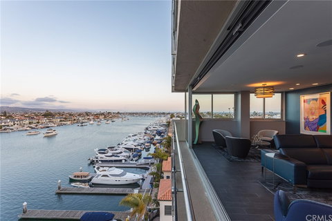Breathtaking sunset and Catalina Island views provide an enchanting backdrop for lap-of-luxury living at this newly renovated waterfront residence in Newport Beach’s exclusive Vista del Lido building. Glittering harbor vistas captivate after dark, and a coveted setting makes it easy to leave the car at home and enjoy the beach, shopping, Lido House Hotel and the vibrant Lido Marina Village. A sleek, contemporary interior of approximately 1,597 square feet is embraced by glass walls that frame mesmerizing Rhine Channel and bay views while ensuring there is no shortage of daylight. Chic living and dining areas allow effortless entertaining and lead to a modern dine-in kitchen that presents top-of-the-line appliances and designer pendant lights that illuminate a stone-topped center island. Automatic doors of the main living area open to soothing backdrop of the bay and harbor. Sited to capitalize on the panoramic vistas, the lavish owner's suite hosts a sumptuous walk-in closet and oversized walk-in shower outfitted in stone. Further along, the open floor plan reveals a spacious secondary bedroom offering custom lighting and newer carpet, as well as another full bath. Additional highlights include two reserved subterranean garage spaces, a storage locker and a full audio/visual system. Residents of Vista del Lido enjoy priority on rental of private boat slips and side ties at a reduced rate, full-time onsite management and common area maintenance personnel, onsite laundry, a heated pool, jetted spa, barbeque area, and a large community patio that is perfect for social gatherings and relaxation.