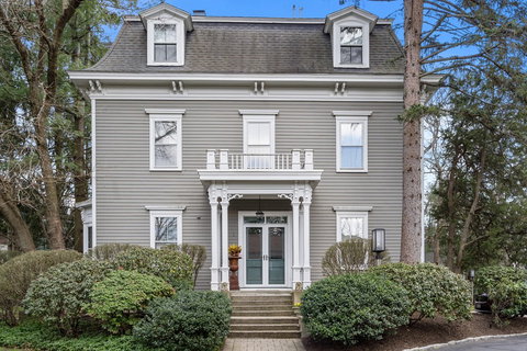 Welcome to the elegant and original 1850's Victorian townhouse that is the centerpiece of the desirable Chestnut Grove complex. The home retains period detail blended with modern design elements. Offering 2200 sf of sun-filled and spacious rooms perfect for entertaining and casual living. A striking kitchen with gloss white cabinetry and granite counters flows seamlessly to the pretty dining with 14 foot ceilings. The living room features a wood burning fireplace, custom built-ins, and beautiful bay window with alcove. The second floor has two bedrooms each with generous closet space and en-suite baths. The 3rd floor has a great room with cathedral ceiling perfect for an office, family room, or gym in addition to a large bedroom. The lower level provides abundant storage and a laundry area. Two assigned parking spaces are deeded to the unit. Make this special property your dream home.