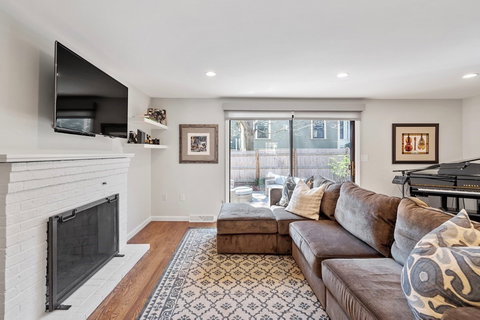 Move right in to this spacious townhouse that feels more like a single-family home, with three full levels of living space! The first floor is bright and open with beautiful hardwood floors throughout. Recently renovated, the kitchen is magazine-worthy with custom cabinetry, quartz counters and stainless appliances and opens to a dining area with built-in bench seating. A wood-burning fireplace and built-ins anchor the oversized living room with a south-fa...