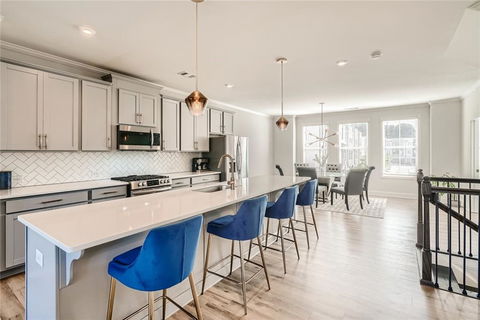 Located in the heart of Norcross, this stunning 3-bed, 3.5 bath townhome with upgrades galore is waiting for you! The home boasts superior finishing across light fixtures, shiplap fireplace, flooring, tiling in kitchen, bathrooms / cabinetry over the base builder grade finishes. The home boasts an oversized chef's kitchen with extended island, master with dual closets, spa-like bathroom and a bonus room perfect for work or play! Spend time entertaining, working, or sipping cocktails out on the balcony where you are surrounded with greenery. The Kelly is conveniently located in the heart of Norcross within walking distance to downtown, restaurants and shopping! This will not last long!