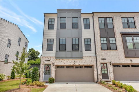 Exceptionally built and located in the heart of Norcross, this southern living, end-unit townhome is sure to impress with three finished levels and the fresh, transitional aesthetic makes this a one-of-a-kind choice. Meal prep has never been easier or more enjoyable with the expanded kitchen island, Frigidaire Gallery appliances, dual wall ovens, and gas cooking, The modern open concept floor plan from dining to living guarantees effortless entertaining from top to bottom and features designer lighting, large windows, and a shiplap fireplace, The upper sleeping level has three bedrooms including the massive owner's suite with dual sinks, large walk-in shower, tray ceilings, and dual upgraded custom walk-in-closets. Multiple outdoor living spaces include a covered deck and patio overlooking a generous green space from the walk-out finished terrace level. This end-unit features 7 additional windows drenching the entire home in fresh sunlight. 2-car garage and large parking pad for 2 additional cars and plenty of guest parking. Excellent location, convenient for commuters and pedestrians alike- only a stroll to downtown Norcross, restaurants, and shopping with close proximity to the Forum and Peachtree Corners.