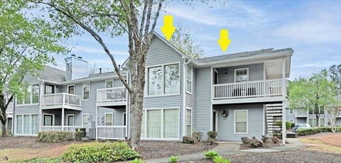 Well maintained, beautiful end-unit, upstairs condo. This 2 bedroom, 2 bathroom condo has its own private entry and will not disappoint. Split roommate floor plan, with large rooms and roomy walk-in closets. Updated bathrooms, gorgeous backsplash in kitchen. Fireplace in the family room. Owner is leaving all appliances - including the refrigerator, washer and dryer. Move-in ready! Private deck with two door entry, ceiling fans in both bedrooms, spacious living room plus a breakfast room! The community has a private pool, is directly across the street from the elementary school, is convenient to I-85, 285 and shopping - plus it is a very quite neighborhood! There is a lot to love here!