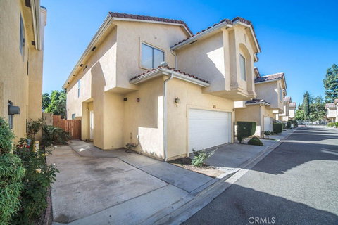 Luxurious property in a gated community. This gorgeous property is light, bright, and inviting upon entry, and offers no shared walls with neighbors. One of the largest models within the area at an expansive 2215 sq.ft. features: a private backyard patio ~ 4 Bedrooms+Office, and 2.5 Baths allows you exceptionally easy living ~ The 1st floor flows gorgeously with its Ceramic Tile throughout the Entry, Living Room, Dining, Kitchen, Breakfast Nook, and Bathroom ~ Gorgeous Floor Moulding throughout the home ~ The kitchen comes complete with Newer Stainless Steel Appliances & Granite Counter tops ~ The home illuminates itself in light with its multitude of windows, high ceilings, and skylight ~ Follow the Newer Walnut Laminate Flooring upstairs into the Huge Master Bedroom and 3 additional spacious Bedrooms and 2 Baths ~ The Master offers a huge walk-in closet, in-suite office, and Bath with His and Her Sinks, separate Shower and Tub ~ Attached 2 Car Garage along with a private driveway that fits 2 more midsize cars as well ~ Newer A/C and Heater ~ New Tile Roof in 2016 ~ Low HOA, which includes water ~ This impressive home is full of extras! All you need to do is bring your furniture, and a few personal touches, and make it all yours!
