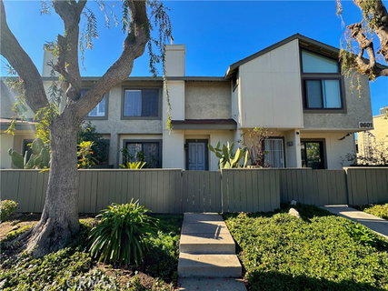 Welcome to this charming 2-bedroom, 2.5-bathroom townhome designed for comfort and convenience. Featuring laminate wood flooring on both levels, the home boasts a spacious primary bedroom with two closets and a private bathroom, along with a second bedroom perfect for guests or a home office. The upstairs laundry area adds to the functional layout. Enjoy a private backyard, a fenced front yard, and direct entry-level access to a 2-car garage for your ease. Community amenities include a pool and spa for relaxation. Located close to markets, schools, and easy freeway access.