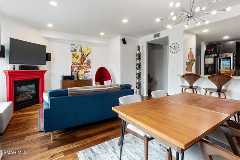 Located in the highly desirable NOHO Arts District, this 3-bedroom, 2-bathroom single-story condo offers modern design and comfort. The front-facing unit features a spacious kitchen with Caesarstone countertops and a glass tile backsplash, flowing seamlessly into a sunlit living room. Custom paint, high ceilings, and a cozy fireplace add a welcoming touch. Both bathrooms are updated with contemporary fixtures. Two balconies offer great spaces for barbecuing, while two private storage rooms, a bike room, and guest parking are available within the building. Experience the vibrancy of the Noho Arts District right at your doorstep.