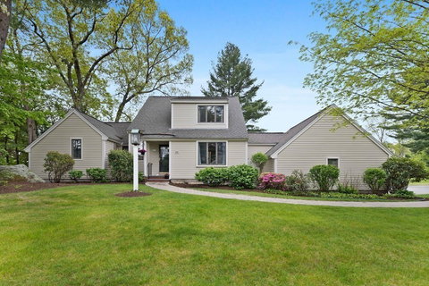 PREPARE TO FALL IN LOVE! Located on the 18th hole of Thomson Country Club, at The Greens, a turn-key contemporary free standing condo lives like a SINGLE FAMILY HOME, with GOLF COURSE & WATER VIEWS, and two decks – located in North Reading’s most desired neighborhood. Enter through the grand foyer with soaring ceilings & enjoy an OPEN CONCEPT floorplan. Gleaming hardwood floors & abundance of natural light throughout. Enjoy a recently renovated kitchen with stone counter tops & stainless steel appliances. Light & bright living room with fireplace, large dining room, and bonus sun room area. Expansive first floor primary suite with spa-like en-suite bathroom, walk in closet, and private deck overlooking the Greens. Two add’t generously sized bedrooms on the second floor. Plus, a finished lower level with a large family room, wet bar area, and NEW half bath. 2 car garage with plenty of storage & a workshop space. ALL THIS, JUST 30 MINUTES BOSTON. A PERFECT HOME INDEED!