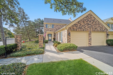 Stunning 2022 renovation of brick townhouse overlooking water in sought after Ancient Tree. Prime end unit is flooded with light and privacy with peaceful pond views. The enlarged kitchen boasts painted white cabinetry with stained island, quartz countertops and full height quartz backsplash. Kitchen opens to great room with marble fireplace flanked by doors leading to the brick paver patio overlooking the water. First floor has full bath and bedroom / den, beautiful new hardwood floors with custom panel moulding and crown throughout. Second Floor has 2 ensuites with balconies, new carpet, baths as well as laundry room. Finished lower level has cedar closet and new carpeting. 2 car attached garage. Within walking distance to clubhouse, pool, tennis and pickle ball courts. Ancient Tree is one of the best values in Northbrook with the lowest assessments which includes all amenities, landscaping and snow removal. This unit is a must see as it's the only renovated Ancient Tree home available!