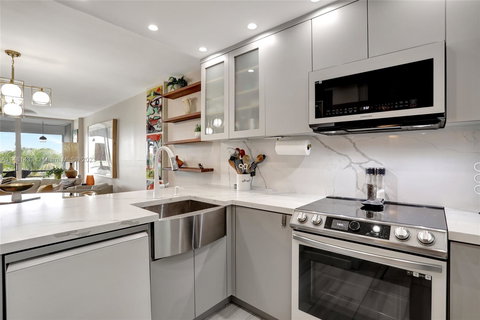 SELLER IS OFFERING A $4000 CREDIT TO BUYER WITH FULL PRICE OFFER!!! Welcome to your New Oasis in the Heart of Royal Park. This Meticulously Updated 3rd Floor Corner Unit offers the perfect blend of Modern Comfort and Serene Waterfront living. As you step inside, Natural Light pours in, Illuminating the Spacious Open Layout and Highlighting the Stunning Water Views visible from every room. The well-Appointed Kitchen, Boasting Sleek Marble Quartz Countertops and State-of-the-Art Stainless Steel Appliances, Brand New Cabinets, and Kitchen Lights Powered by Alexa. Both Bedrooms are Generously Proportioned, each with Walk-in Closets and its own Bathroom. Finally, savor the Evening Sunsets from your Balcony. Residents of this community benefit from exclusive access to a range of amenities.