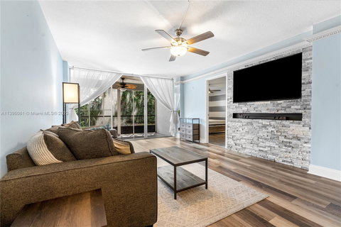 Welcome to Unit 1H! This spacious first-floor unit features an open floor plan, a stunning kitchen with granite countertops, and Panda Wood cabinetry. Upgrades include a new refrigerator, AC unit, electrical panel, washer and dryer, tankless water heater, and garbage disposal. Enjoy the secluded private back patio. The community offers a 24-hour guard gate, security patrol, and amenities like three pools and a billiards room. Centrally located, close to major roads, shopping, and dining. This unit has it all for a great price! Don't miss this incredible opportunity! **Cannot be rented the first two years of ownership**