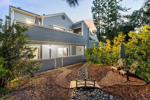 A true Fire Mountain gem located on a quiet street. This South O property has it all. Highly upgraded home with vaulted ceilings and a chef's kitchen. Natural light fills the home with tree top views from the large private deck upstairs. The backyard has a secluded patio that lets out to a hidden garden surrounded by trees and flowers. Lined with solar lights and water features, the backyard is a magical zen getaway that is one of a kind for this community. Private useable outdoor space is a rarity in this neighborhood. Upgraded flooring throughout. Natural stone graces the spacious kitchen with plenty of counter space that includes a large eat-in peninsula. Keep the home cool with upgraded ceiling fans in all rooms. The home has AC for those few hot weeks in the summer, and a beautiful fireplace to curl up next to in the winter. There are two downstairs master bedrooms with ensuite bathrooms and large walk-in closets. Attached two car garage. Ocean Village also has a private pool and jacuzzi to enjoy near the community club house.