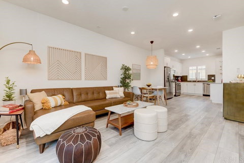 Upgraded smart newer tri-level townhome featuring three bedrooms and three full bathrooms. First floor flex space and oversized two car garage with 8 foot garage door. Second floor great room/kitchen with bedroom and full bath. Top floor offers two bedrooms with ensuite bathrooms. Tucked into the back of the community with privacy and long views. Enjoy the morning sunrise with ocean breeze on the balcony. Luxury vinyl flooring throughout. White shaker cabinets, quartz counters and modern backsplash. St. Cloud is a beautiful gated community located in the heart of Oceanside with wide tree lines streets and beautiful landscape. Amenity-rich community includes resort style pool, hot tub, Cabana, BBQ area, fitness room, tot lot, basketball hoop and guest parking. Close to beaches, shopping, and entertainment.