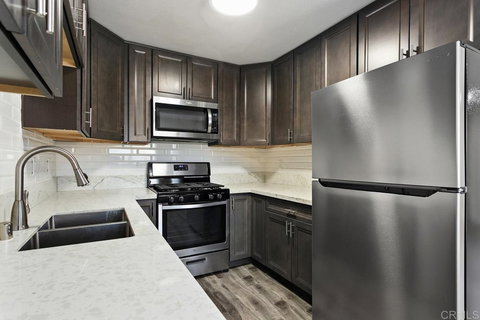 Pristine condo in the charming and quaint community of Lakeshore Villas. Features of this top floor home include a newly remodeled kitchen outfitted with stainless steel appliances, quartz counters, a private patio and full-size washer/dryer. Additional features include a freshly painted interior, newer carpeting, LVP, walk-in closet in the master bedroom and new bathroom vanities! Community pool and spa. Walking trails around Libby Lake with Park, Skate Park, and Volley Ball Court. Short drive to beaches, Camp Pendleton and shopping. 1 Assigned Parking Covered Parking Spot and 1 Open Parking Spot. HOA Pays for Water, Sewer, and Trash. VA approved.