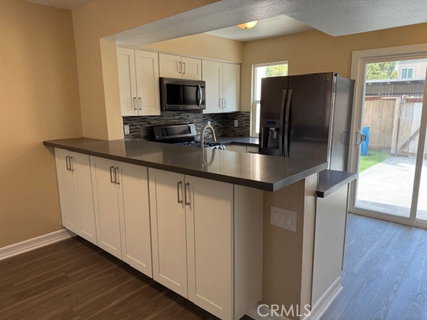 This charming 2-story townhouse offers a delightful living experience in a serene community of Tamarin Orange. Featuring 2 cozy bedrooms and 1.5 well-maintained bathrooms, this home provides ample storage space within its comfortable 1,087 sq ft layout. The open floor plan boasts a spacious living area with new luxury Vinyl flooring and windows that flood the space with natural light. The kitchen includes newer cabinets and quartz countertops. Step outside to a large easy to maintain, enclosed patio perfect for entertaining or relaxing. Modern conveniences include an inside laundry room located upstairs for added ease. Community amenities such as a pool, spa, BBQ area, and fireplace are just steps away, with the unit conveniently located right across from the pool. Additionally, there are two designated carport spaces for your vehicles. Situated close to shopping, dining, and with easy freeway access, this townhouse offers a comfortable and convenient lifestyle in a friendly community. Don’t miss the opportunity to make this lovely home yours!