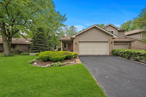 Fabulous all brick end unit ranch on a private wooded back yard. Enjoy the large living room with vaulted ceilings, gas fireplace, and double skylights.Hardwood floors in foyer, kitchen, and both bedrooms. Large eat in kitchen with granite counters, skylight and lots of cabinets.Two large bedrooms both with walk in closets. Primary bedroom also has trey ceilings, and whirlpool tub in bathroom. Huge finished look out basement with full bath, second kitchen and large utility room.Buyer has option of laundry on main level or in basement.Seller will leave grill. Enjoy the beautiful woods from your oversized deck.walking path behind home.Close to train.Very nice!!!! MULTIPLE OFFERS. FINAL AND BEST DUE SATURDAY MAY 18TH AT 3 PM