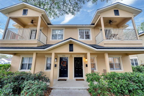 Ready for you to call home, this beautiful corner unit condo features 3 bedrooms, 3 bathrooms, an open floor plan, balcony off the master bedroom, a covered front porch, and a detached one car garage with additional parking pad. This home boasts numerous updates including vinyl plank flooring throughout, updated kitchen including cabinets, granite countertops and appliances, updated lighting throughout including the addition of can lights, a remolded master bath and the addition of plantation shutters, and a Culligan water filtration system. The AC is less than two years old and the home has a new roof that was installed in 2020. Opposite the laundry closet, you’ll find a full bedroom and bathroom on the ground floor perfect for privacy for guests or a designated office. Outside your back entrance is a one-car detached garage and an adjacent guest parking spot. Upstairs you’ll find both remaining bedrooms. To the right, the junior suite is full of natural light with an ensuite bathroom with a shower/tub duo. To the left and the front side of your property, you’ll find the master bedroom. This oversized suite is comprised of a walk-in closet, ensuite with dual vanities and a standing shower and access to the balcony overlooking the street and Princeton Elementary. HOA covers the exterior of the property and landscaping of communal areas. This unit is located near downtown College Park just a short distance from grocery, shopping, and restaurants. It is also in close proximity, within a few miles, of Orlando's Leu Gardens, Lake Eola, Orlando Museum of Art and Science Center, Rollins College, and the Amway Center. You don’t miss out on the opportunity to call this condo yours.