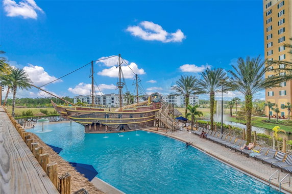 The neighborhood is vibrant, with dining options like Frankie Farrels and Ali Baba Hookah Cafe. Also nearby are shopping spots, such as Lake Buena Vista Factory Store. Major theme parks like Walt Disney World and Universal Studios are a short drive away. This building allows for a mix of peace and entertainment.