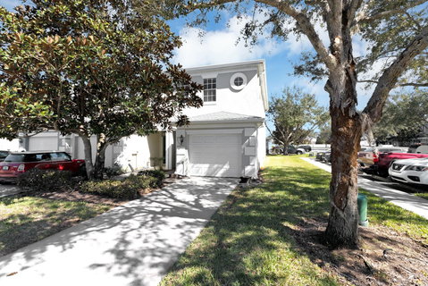 Introducing a captivating condominium nestled in the sought-after Savannah Pines community within Moss Park of Lake Nona. This exquisite corner unit offers three bedrooms, two and a half baths, and a one-car garage. Downstairs, you'll find ceramic tile flooring throughout the spacious living and dining area, enhanced by sliding doors leading to a covered rear porch – perfect for outdoor relaxation. Upstairs, laminate flooring graces the hallway and stairs. The three bedrooms have carpeting including a primary bedroom with an ensuite, while two additional bedrooms share a convenient Jack-and-Jill bathroom. The utility closet upstairs adds practicality and ease to daily routines. Residents of this gated community enjoy access to a clubhouse, workout room, and toddler park overlooking a serene lake. Conveniently situated near Lake Nona's Medical City, major highways, and popular attractions, this condominium offers the perfect blend of comfort and convenience. Don't miss your opportunity to call this exceptional property home.