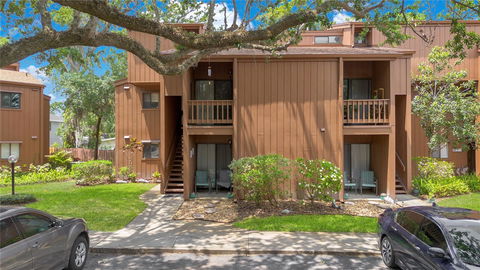 Under contract-accepting backup offers. Located in the private, gated community of One Thousand Oaks, this beautiful 4 bedroom, 2 bathroom condominium has been completely renovated from floor to ceiling and wall to wall! While driving through the quiet, well-maintained community, be sure to take notice of the mature oak trees. Stepping through the front door you are greeted by a spacious foyer with a beautifully updated kitchen to your immediate left. The kitchen features high-end granite countertops, a modern glass tile backsplash, a new faucet, sink & disposal and updated stainless-steel appliances. Just off of the foyer is the primary bedroom with ensuite. The bedroom is plenty large enough for a King-sized bedroom suite and the walk-in closet provides loads of storage, while the sliding glass doors provide access to the front patio where you can wake up with your morning cup of coffee. The ensuite boasts granite countertops with double-sinks and a stunning, glass-enclosed, tiled walk-in shower with a rain shower head. Making your way out of the primary, you are in the main part of the home which features an open concept dining and living room. New sliding glass doors off of both rooms step out onto the patios where you can enjoy an open-air BBQ or take in a peaceful evening on your screen-enclosed patio. A fence along the back of the property offers additional privacy. Making your way back into the home your eye is drawn to the living room with its modern tiled, wood-burning fireplace. A wood feature wall, complete with an 82-inch TV, that stays with the home, brings the entire space together and provides a comfortable space to entertain family and friends. A hallway houses 2 additional bedrooms, one of which is similar to the master in that it has access to a front patio via a set of sliding glass doors. A comfortable guest bath, which has also been completely renovated is accessible to all while the interior laundry room, with a new stackable washer & dryer, makes weekend chores easy! Adjacent to the living room and tucked behind a sleek set of barn doors is a 4th bedroom that could also be used as an office, fitness or hobby room. This 4th bedroom has a set of sliding glass doors that provides egress to an outdoor patio. In addition to what’s already been mentioned, this home boasts loads of upgrades and improvements including: refinished ceilings and walls, new ceiling fans and lighting throughout, including can lighting in the kitchen and living room, new interior doors and tile floors throughout. A new interior & exterior HVAC unit, a new water heater and updated electrical & plumbing offers peace of mind to any buyer! Two carport spaces, each with overhead storage make parking simple, while additional parking is available for guests. Community amenities include tennis courts, a pool and a large clubhouse with kitchen and pool access. Convenient to area shopping, dining and major roadways and less than 15 minutes from Downtown Orlando, this home is ready for you to unpack and move right on in! Neighborhood schools include Blankner K-8 and Boone High (Go Braves!).