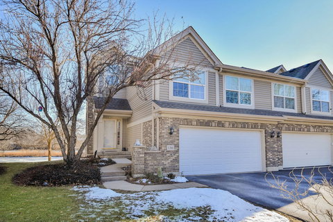 Prepare to be captivated by this stunning end-unit townhome offering priceless panoramic waterfront views! Nestled in the heart of the desirable River Mist community, this bright and beautiful home blends comfort with a thoughtfully designed layout. Step up into the sunlit great room, where windows fill the open floor plan with natural light, and oak flooring seamlessly leads into the dining room and kitchen. In the kitchen, you'll find solid surface countertops, hardwood cabinets, a bar-height counter perfect for casual meals, and stainless steel appliances. Step outside through glass doors to the spacious balcony, where tranquil water views and mature landscaping create a perfect spot for your morning coffee. Upstairs, you'll find two additional bedrooms and a full bathroom, perfect for family or guests. Continue the ascent, you'll find the owner's suite, a generously sized sanctuary featuring a row of windows overlooking the water, vaulted ceilings, large walk-in closet, and luxurious bathroom complete with dual vanities, garden tub, and a separate shower. Rounding out the level is a versatile loft offering the flexibility to work or relax from home and a conveniently located laundry room.The fully finished walkout basement is an entertainer's dream, featuring a gas fireplace, a full bathroom, a multipurpose room, and access to a 14' x 12' screened porch-a true haven for taking in the breathtaking waterfront scenery. Completing this home is a two-car garage.This spectacular home offers maintenance free living, with access to scenic walking paths, picturesque ponds, and the Fox River along with lush prairie landscapes. Enjoy community events, proximity to top-rated Oswego 308 schools, the Fox Bend Golf Course, downtown Oswego, shopping, dining, and easy commuter rail access! This home is more than just a residence-it's a lifestyle.