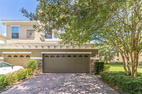 CLAYTON CROSSING TOWNHOMES - 3 bedroom, 2.5 bathroom - this rare find END/CORNER unit features just under 1,700 square feet of spacious living space and a 2- CAR GARAGE. Low HOA fee maintains the roof and exterior of the community! Enter along the side of the home to the large open concept living, dining, and kitchen space. Downstairs features ceramic tile floors, a spacious living area, and sliding doors out to the lovely patio in back. The kitchen features solid wood cabinets, granite countertop, a large island breakfast bar in the kitchen and stainless steal appliances. There is a nearby half bath/powder room on the lower level as well. Upstairs you will find all 3 nice size bedrooms. Enter the primary bedroom at the top of the stairs with a spacious walk-in closet. The primary bathroom features a walk-in shower, garden tub, and vanity with dual sinks. The landing at the top of the stairs includes a built-in desk area, perfect for working from home. Down the hall you will find the upstairs washer/dryer closet, a secondary full bathroom, and two additional bedrooms with lots of light. Immediately in front of the townhouse community is access to the Cross Seminole Trail - perfect for running and biking through gorgeous Seminole County. AC - 2021. There is lots of guest parking though out the community. This gated community also features a community pool. Ideally located right off 417 at Aloma, and nestled back behind the Publix at Aloma Walk, Clayton Crossing Townhome Community is close to shopping, dining, UCF, Full Sail, and Research Park. Great community, ideal location, perfect townhome!