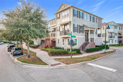 Welcome to this immaculate, 3-bedroom, 3.5-bath, oversized 2 car garage offering 2,018 sq. ft. of luxurious living. This corner unit (On Boardwalk Avenue) located in heart of “The Hamptons Townhomes” within “Oviedo on the Park”. This home features hand-carved solid wood floors and granite kitchen countertops and grand island, complemented by a custom backsplash and pendant lighting along w ceramic wood toned flooring at each landing connected by stained oak stairwells.