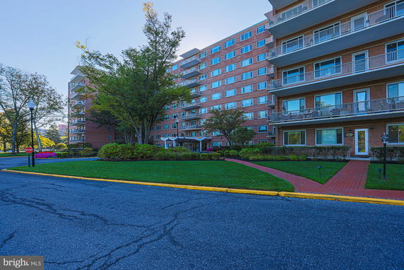 Front view of a multi-story brick apartment building with balconies and landscaped gardens.View ListingMLS ID #MDBC2141936