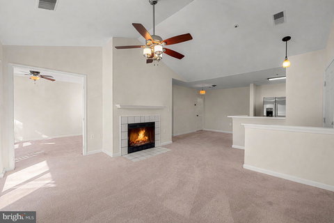 TOP-FLOOR UNIT WITH VAULTED CEILINGS & PRIVATE TREE VIEWS! Spacious top floor 2-bedroom condo featuring fresh paint and brand-new carpet throughout, updated bath, and an open kitchen overlooking the living room, outdoors and wood-burning fireplace. Enjoy the tree view private balcony and convenience of Red Run Stream Valley Trail just steps away. Plenty of storage inside and out. You deserve maintenance-free living with community pool access!