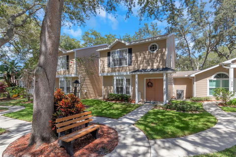 The residence offers a bright and airy ambiance with an open layout, abundance of natural light, and vaulted ceilings in the three bedrooms upstairs, with the primary bedroom featuring its own en-suite bathroom. The screened-in porch with updated tiling provides a peaceful outdoor retreat, while the first floor includes a convenient half bath. The washer and dryer are conveniently located inside the kitchen, but a separate storage area with hookups ensures privacy by dividing the home from its neighboring unit. Surrounded by lush oak trees, the property enjoys a prime location near US 19 for easy commuting and access to explore various attractions including Fred Howard Park, Honeymoon and Caladesi State Parks, and Clearwater Beach. The nearby St. Pete–Clearwater and Tampa International Airports are both less than half an hour away. The area also offers historic Dunedin and Safety Harbor, the Pinellas Trail, and top-rated schools. Welcome to Fox Lake, a community suitable for all ages with serene surroundings and mature oak trees. Residents are permitted to have 2 pets with no lease restrictions and can make use of amenities like the heated pool, clubhouse, shuffleboard, tennis and basketball courts, putting and bocce ball greens, pet-friendly walking trails, and a playground. The monthly fees cover water, trash, sewer, cable/internet, pool upkeep, and landscaping. Don't let this extraordinary chance pass you by to reside in a peaceful sanctuary with urban conveniences. Don't hesitate to schedule a viewing of this exceptional home and begin living the lifestyle you've always desired!