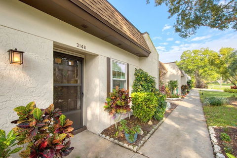 Turn key move-in ready villa condo with beautiful garden view and furnished with everything you need! Great location close to main clubhouse with resort style amenities. Be assured with updated windows & flooring, new electric panel, and new HVAC in 2016. Eat in kitchen with pantry closet, pass through window & newer counters. Easy care vinyl and tile flooring, Updated shower in master bath, and Florida room with courtyard view. Oversize carport with room for a golf cart too, and an exterior storage closet for bikes or beach gear. Another pool, shuffleboard court, screened lanai, & laundry right on site. Well managed condo association with reasonable monthly maintenance fee that includes everything but electric. Water, sewer, cable TV, high speed internet, lawn service, irrigation, exterior maintenance, building insurance and trash removal all included. Enjoy all the amenities of Highland Lakes. This includes free golf on 3 private executive courses, free RV or boat storage, heated pools & spa, tennis, pickleball, shuffleboard & bowling leagues. There are multiple health and fitness programs, and a club for virtually every interest. More entertainment and social events than will fit on your calendar and you will like the friendly country club atmosphere. There is an Arts & Crafts building with studios, classes, & a full wood shop. The Lake Tarpon Lodge also has a heated pool, party & picnic facilities, a fishing pier & community pontoon boats. It is adjacent to the boat ramp and open dock with free RV or boat storage in a secure lot. This villa is above the flood plain in a non-evacuation zone. Highland Lakes is close to world renowned Gulf beaches, a wealth of shopping & restaurants, rich cultural resources, exciting pro sports, excellent medical services, 2 international airports & Tampa's highly rated cruise port. This community is everything you need. Even if you're not ready for year-round life in paradise, this condo allows long and short term rental with no waiting period. Isn't it time to start your best life?