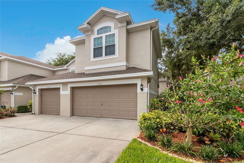 End unit in coveted Lake Pointe at Countryside. This 2 bedroom, loft (potential 3rd bedroom), 2.5 bath, 2 car garage home has been updated and is ready for a new owner! Trane AC, updated windows, hurricane rated garage door with opener, new water softener/filter, remodeled kitchen with wood cabinets, granite counters and dining island. Second level has a split floor plan and huge loft that is perfect for office or potential 3rd bedroom. Master bedroom is light and bright, walk in closet and master bathroom. Large second bedroom has optional furniture. Under the stair storage is a nice feature. Garage has work bench, storage shelving and additional refrigerator, new water softener. Roof is 5 years old. Monthly HOA fee is $325 and includes: irrigation, lawn care, exterior paint, pond maintenance, pool, streets and lights, exterior pest control, cable, trash and roof! Do not miss this rare opportunity - this beauty will not last!